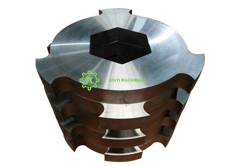 · Lames de broyeur à double arbre: Interverrouillage de lames en forme de disque avec plusieurs crochets ou dents.