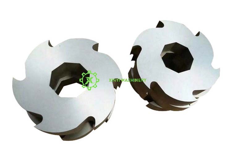 · Lames de triturateur à arbre unique: Lames carrées ou octagonales montées sur un rotor, travaillant contre un couteau de lit fixe.